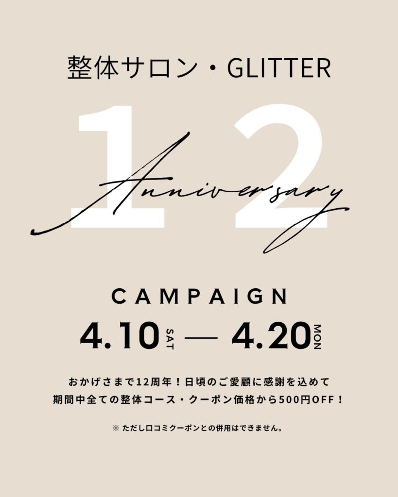 期間中にご来店の皆様にはもれなく、クーポン価格からさらに500円OFFにて整体させていただきます。